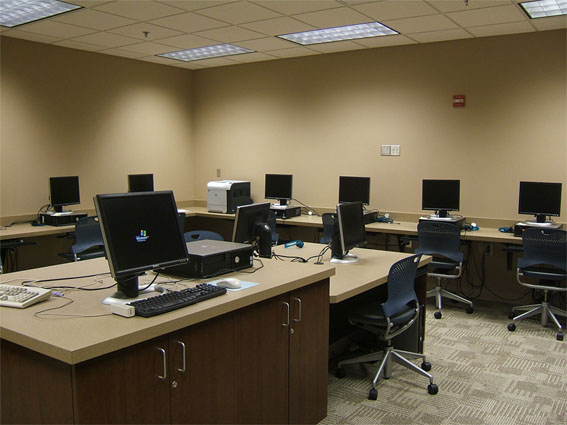 A modern computer lab with projector-based learning, internet access, and email facilities.