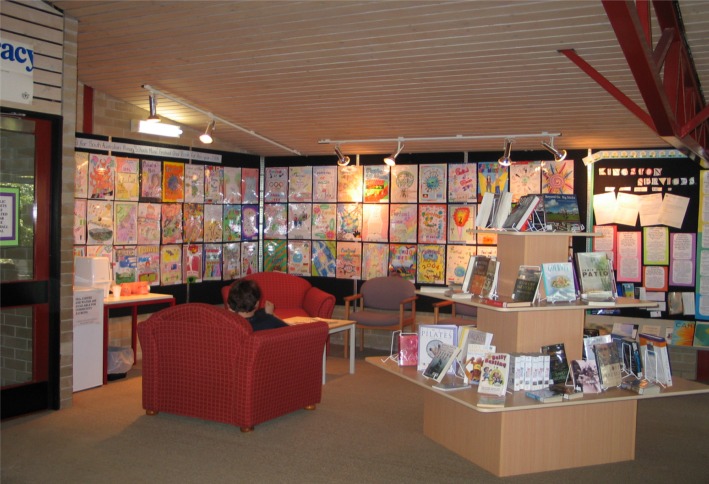 A well-stocked library with reference books, encyclopedias, journals, magazines, and fiction.